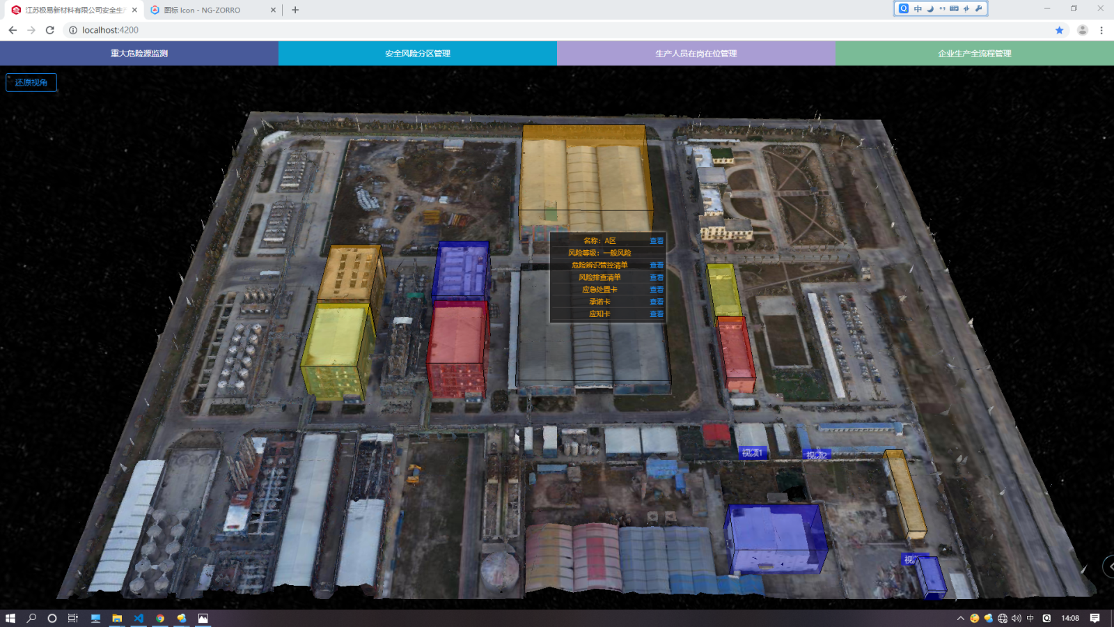 化工安全生产信息化管理平台采用全景式建模展示,私有云平台一体机存储交互方式,系统的解决危化企业从数据采集、视频调取、信息追溯、预警联动、安全存储等一系列安全生产管理功能。平台包括重大危险源监测预警系统、企业安全风险分区管理系统、生产人员在岗在位管理系统、企业生产全流程管理系统、系统集成五大功能,符合省厅“五位一体”的化工安全平台建设要求。