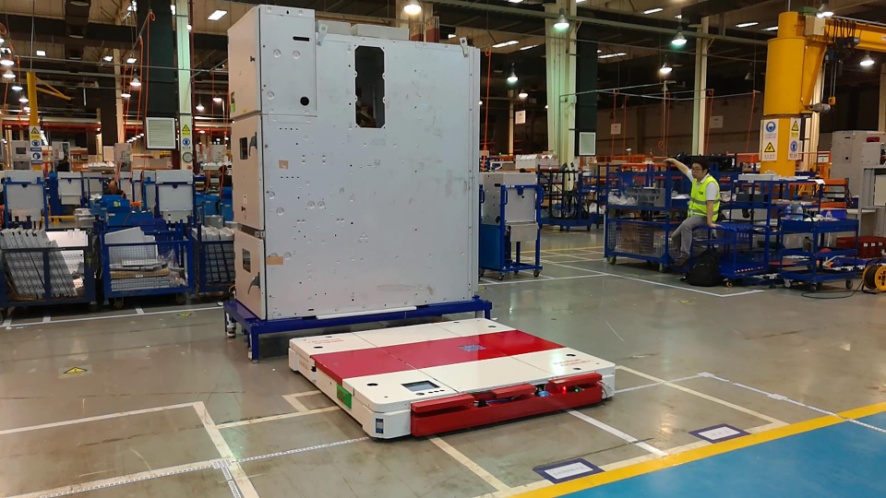 赛摩重载AGV产品引进德国先进的移动车辆控制技术,与多驱动轮同步控制技术相融合,结合AI无人驾驶技术,实现了多轮万向同步、异步行走转向,精确泊车定位等功能。