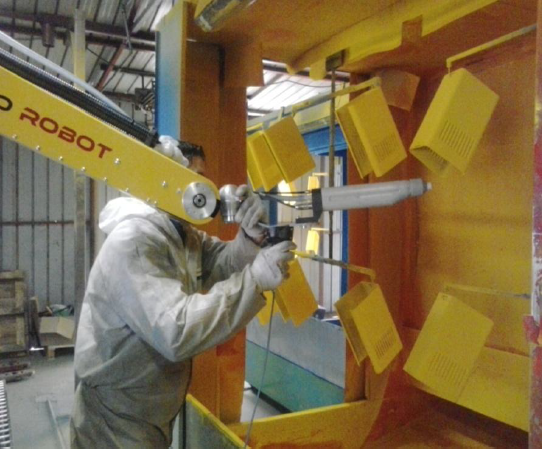 自学习喷涂机器人是公司与意大利艾普公司合资设计、生产的喷涂机器人,具有独立的产权和技术,无需编程,手把手示教,自动生成喷涂轨迹,方便快捷。