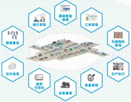 制造运营管理系统(MOM):生产指挥中枢,涵盖数据集成、实时监测、工单管理等核心功能,支持多行业定制,实现生产全流程闭环管理,达成 “可控、协同、精益、可视、可追、智能” 运营目标。