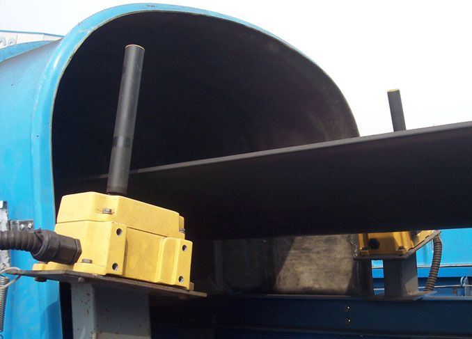 防偏开关通常安装在距输送机头部或尾部0.3-2m的地方,通常在输送机两侧成对安装,可固定在输送机纵梁的顶部或底部,动作杆距皮带边缘距离约25~75mm。
