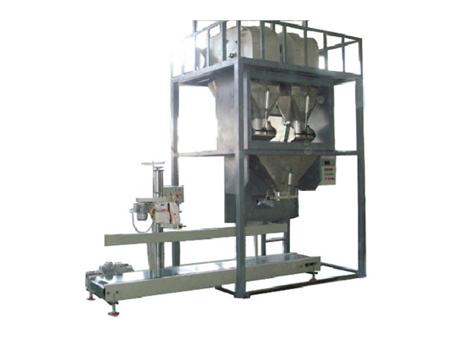 该系列机组主要针对物料流对性较差及对粉料和粒料两种物料交替包装共用一台包装秤设计而成。采用皮带式分级给料方式,将包装秤料仓内的物料通过传感器控制皮带的转速,分级给料到称量斗或包装袋内,当包装物按设定值充填到包装袋内后,给料皮带停止给料。其物料按目标值填充到包装袋后,夹袋器自动打开,料袋通过输送带送走,由人工辅助封口。